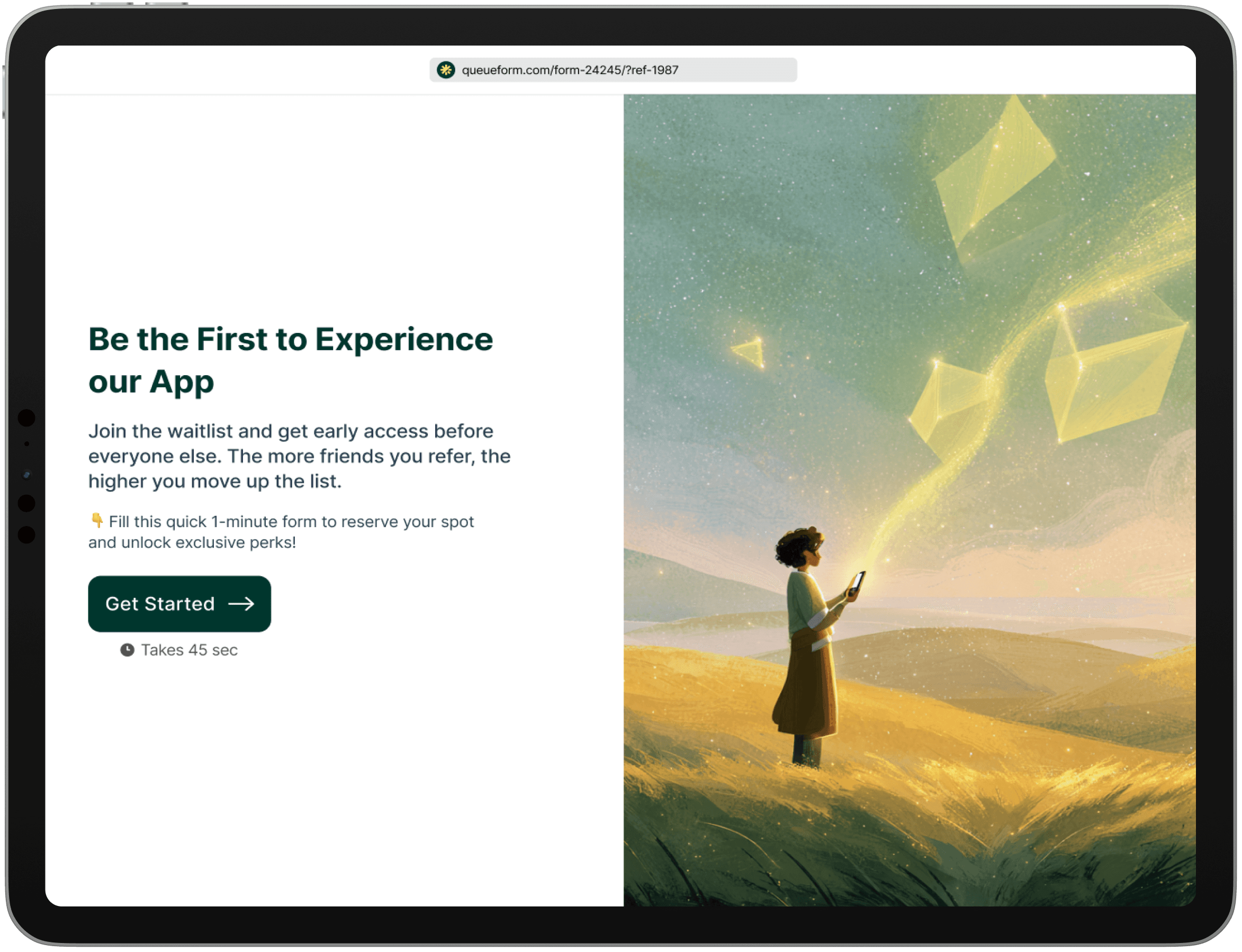 The best app pre-launch waitlist forms include a short description, app benefits, email capture, and optional questions like device preference or pain points — all of which QueueForm templates help you customize.